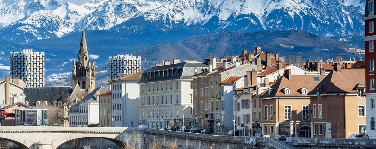 Grenoble, ville de la région Rhône-Alpes du sud-est de la France, se trouve au pied des montagnes entre le Drac et l'Isère. Entourée de montagnes, elle est le lieu idéal pour les sports d'hiver. Elle compte aussi des musées, des universités et des centres de recherche. Les téléphériques sphériques appelés "les bulles" relient la ville au sommet de la colline de La Bastille, qui doit son nom à la forteresse du XVIIIe siècle érigée sur ses versants, Commune la plus peuplée : Grenoble (158 198 habitants). Commune la moins peuplée : Mont-Saint-Martin (76 habitants).